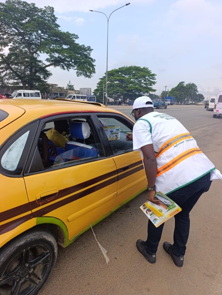 A Abobo-Anyama par exemple, des messages circonscrivant les thèmes de : (i) la limitation de vitesse, (ii) la vigilance au volant, (iii) le respect du code de la route, (iv) la traversée sur les bandes blanches (piétons), ont été adressés à l’ensemble des usagers pour une période de fin d’année sans accident.