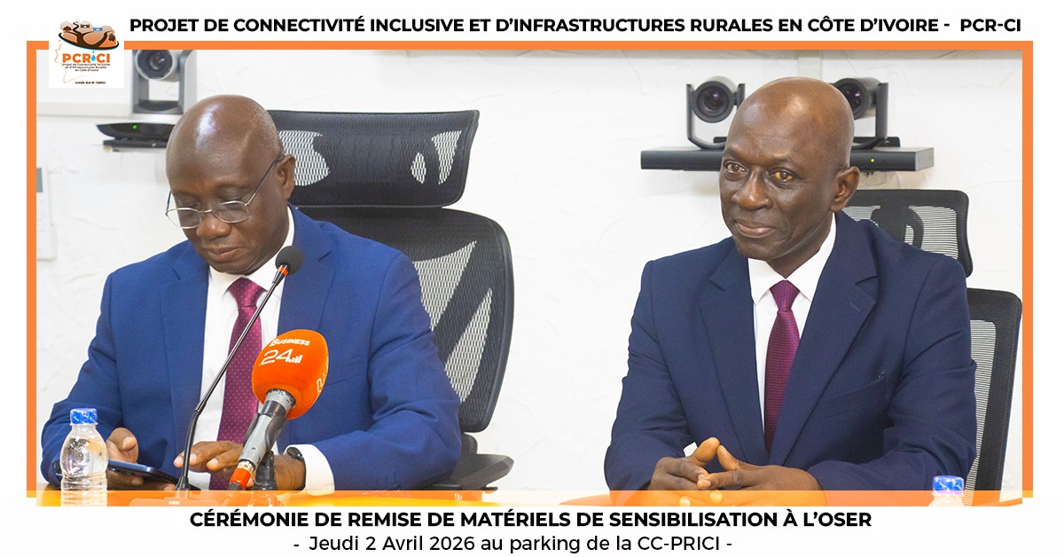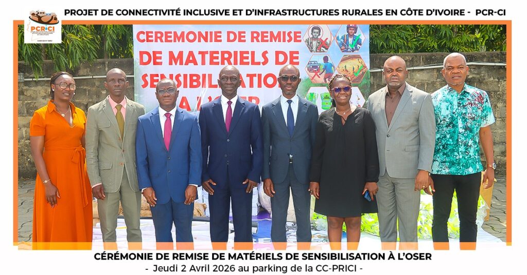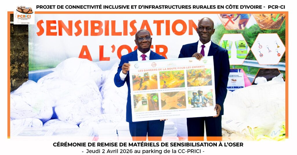 Le jeudi 02 avril 2026, au siège de la CC-PRICI, s’est tenue la cérémonie de remise de matériels de sensibilisation à l’OSER, dans le cadre du Projet de Connectivité Inclusive et d’Infrastructures Rurales (PCR-CI). À cette occasion, le Coordonnateur du PCR-CI, Monsieur Gilbert EKPINI a rappelé l’importance de la sécurité routière dans la mise en œuvre du projet. Selon lui, l’amélioration de la mobilité grâce à la réhabilitation des pistes rurales pourrait amener certains usagers à adopter une conduite à grande vitesse. D’où la nécessité de renforcer les actions de sensibilisation auprès des populations, mais également en milieu scolaire, à l’endroit des élèves et des enseignants.